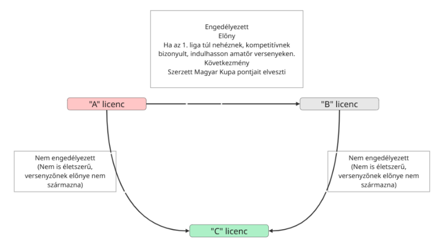 Éves, egyesületi jogviszonyhoz és érvényes sportorvosihoz kötött licenc, amely elsősorban a 2. ligás (amatőr haladó) versenyeken való indulásra szolgál, és lehetőséget ad 1. ligás eseményen eseti rajtengedéllyel való részvételre (ugyanúgy gyűjthet Magyar Kupa pontokat)