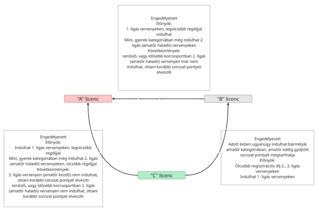 Ha sikerült mind a kettő regisztráció és sikeresen magunknak tudhatunk egy sportorvosi engedélyt is (16 év alatt fél évre szól, 16+ 1 évre), akkor nincs más dolgunk, mint igényelni egy Versenyzői licenszet, annak függvényében melyik Ligában(3 liga van) szeretnénk indulni.